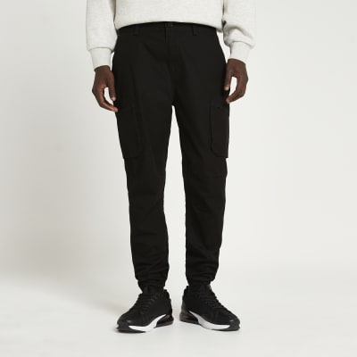Black cargo utility slim fit trousers River Island